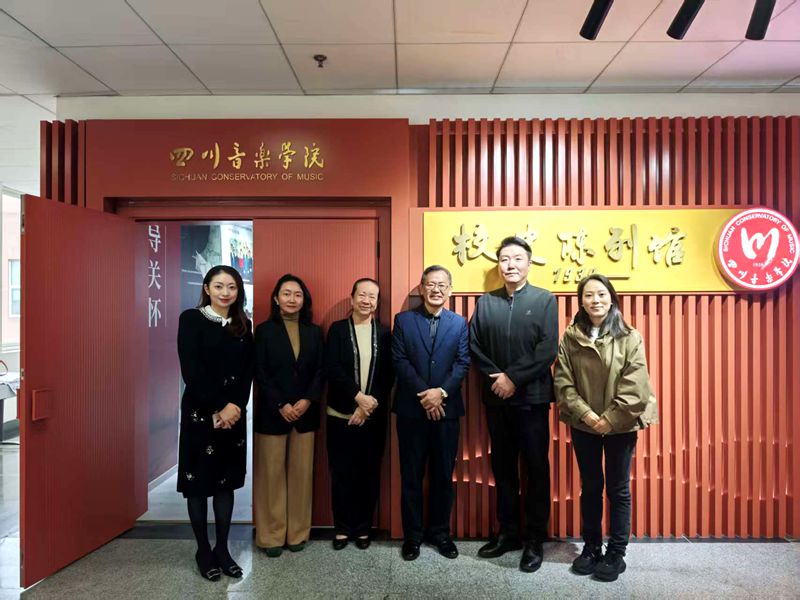 参观过程中,校史陈列馆负责人向两位专家详细介绍了川音从建校初期的艰难探索,到如今成为“国内一流、国际知名”高等艺术院校的发展轨迹,重点讲解了学校在钢琴教育、作曲理论、民族音乐传承等优势学科的建设成果,以及近年来在国际音乐交流领域与东南亚、欧洲、美洲等地区高校开展的合作项目。在校史陈列馆“四海交友”国际板块,方廷华教授驻足良久,他表示:“川音在国际音乐教育领域的视野与实践令人钦佩,这些珍贵的交流记录,正是两国音乐院校友谊的见证。”钟谷韵副教授仔细观看了川音历任音乐教育家的手稿、授课笔记及获奖证书,尤其对中国民族音乐教学成果展柜表现出浓厚兴趣。她感慨道:“川音不仅重视西方古典音乐的教学传承,更在民族音乐的保护与创新上投入深厚,这种中西融合、古今贯通的教育理念,与我们UCSI大学音乐学院的办学思路不谋而合,值得深入学习借鉴。”