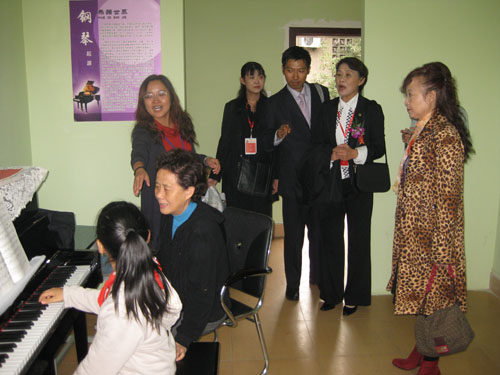 日本大阪府枚云市青少年委员会专家委员金谷有龟及其女儿一行三人专程来华参加我院院庆活动。在校庆期间,她们不仅参观了我院的民乐系、图书馆、西南少数民族乐器陈列馆等,还在声乐系张莉娟副教授的带领下,参观了我院附属小学,并对附小的艺术类教育等情况进入了深入、具体的考察。