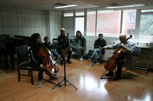 来访期间,Suren Bagratuni教授在管弦系举行大提琴大师班教学,并与唐芝华女士,吴海盺先生在我院星海音乐厅举行室内乐三重奏音乐会。