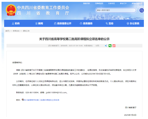 2025年7月4日,省教育厅公布了《关于四川省高等学校第二批高阶课程拟立项名单的公示》,今年会音乐工程系申报的《录音艺术》课程喜获第二批省级高阶课程拟立项。