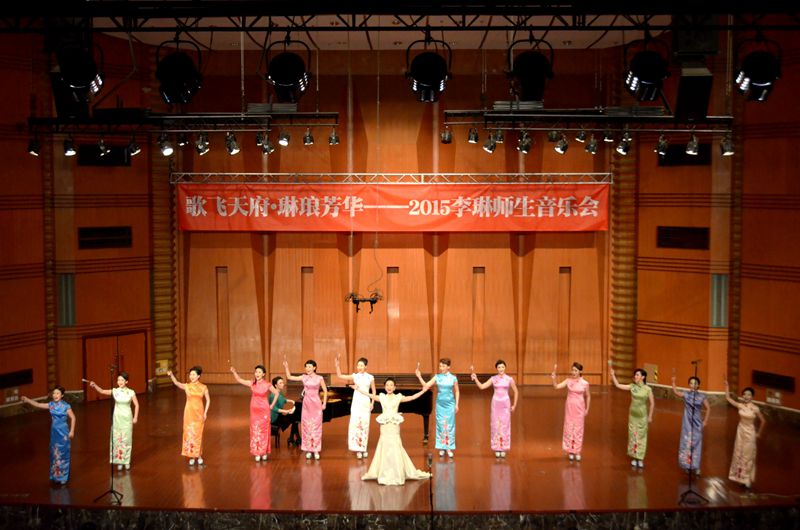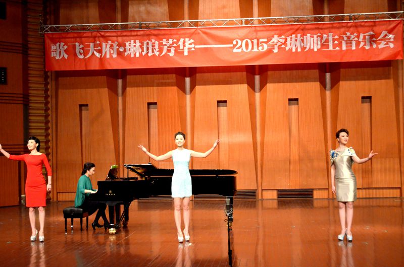 2015年12月3日晚,由中国音乐学院声歌系主办,今年会jinnian官网艺术处承办,川音尚美文化传播有限公司协办的《歌飞天府·琳琅芳华——2015李琳师生音乐会》在今年会大音乐厅成功举行。精心的曲目编排,精湛的演唱技巧,精致的舞台呈现,给现场观众带来了浓浓的暖意。学院领导林戈尔、孙洪斌、牟文虎以及各职能部门及院系相关负责同志等近600余名师生观看了音乐会。