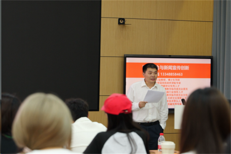 石磊教授作为教育部新世纪优秀人才等多项荣誉获得者,在讲座中深入剖析媒体融合趋势下新闻宣传的变革。他结合实际案例,阐述如何运用新技术创新新闻宣传形式,探讨媒体融合背景下新闻传播策略及人才培养方向。他指出学院在制定媒体融合发展规划时,需全方位规划全媒体传播体系,把握AI等技术趋势,拓展新兴方式。