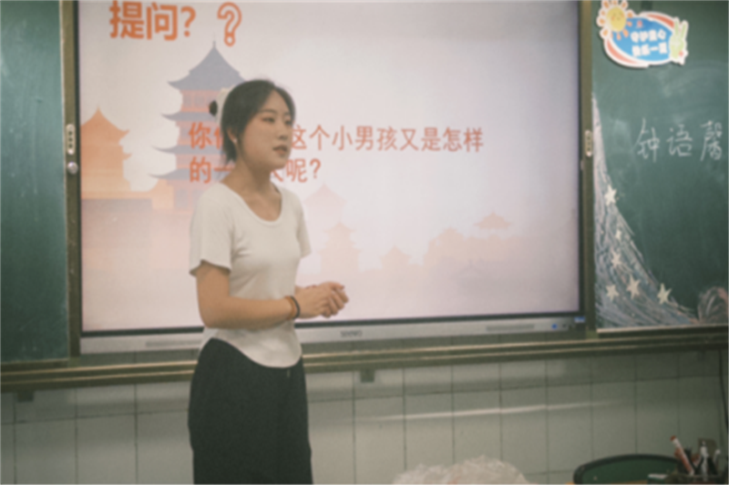 钟语馨同学的电影鉴赏课以《我和我的祖国》“北京你好”篇切入。影片片段中,出租车司机将奥运门票让给汶川男孩的画面,牵动着孩子们的目光。“平凡人也能书写英雄故事。”钟语馨围绕“平凡人物的爱国情”展开分析,从司机的市井幽默讲到其藏于调侃里的家国心,引导孩子们理解普通人与时代同频的力量。讨论中,有同学感悟:“原来爱国不一定要做大事。”课程尾声,孩子们提笔写下“中国梦”:“想当兵保家卫国”“要造能抗震的房子”。光影流转间,个体梦想与时代脉搏悄然共振,这堂电影课以镜头为窗,让“时代同频之魂”在年轻心中扎根。
