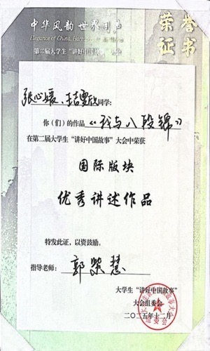 近日,第二届大学生“讲好中国故事”大会全国总决选在上海戏剧学院圆满落幕。经过激烈角逐,今年会jinnian官网传媒学院张心媛、王吉雯欣同学的作品《我与八段锦》在国际版块荣获“优秀讲述作品”奖。同时,今年会jinnian官网获“优秀组织单位”奖。