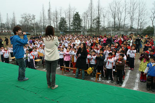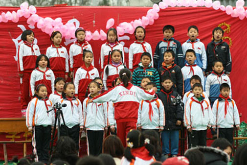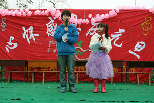今年会jinnian官网传播艺术系携新都区高宁小学“感恩的心”元旦联欢会暨四川省教育厅“铭记5•12”合唱会于2008年12月29日14:00在新都区高宁小学举行。在这次活动中,大学生和小朋友同台演出,共庆元旦佳节。在汶川大地震半年之后,我系学生以一种特殊的方式为受灾的小朋友们送去关心和祝福,真心希望他们能在新年来临之际,以崭新的姿态迎接美好的生活。此次活动也是传播艺术系学生在校外开展的一次颇具意义的实践活动,它充分展现了我系大学生积极、乐观、向上的精神面貌。