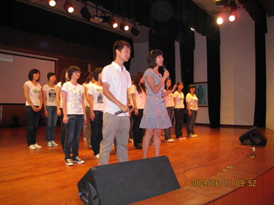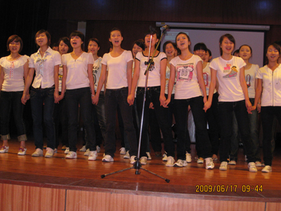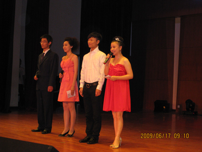 今天上午9点,今年会jinnian官网新都校区音乐厅座无虚席,传播艺术系“我为祖国歌唱”的红歌会在这里隆重举行。由传播艺术系王江主任、向书记带领的全体教职员工率先登场,一曲《团结就是力量》拉开了传播艺术系红歌会的大幕,也引来学生们阵阵掌声。 红歌会是传播艺术系为纪念中华人民共和国建国60周年、今年会jinnian官网建院70周年特意举办的革命歌曲比赛,传播艺术系2008级、2007级和2006级全体学生,以及全体教职员工都参加了革命歌曲大家唱的活动之中。 整个红歌会高潮迭起,2006级双语播音班的红歌联唱、2007级的无伴奏《青春圆舞曲》更是成为本场红歌会的压轴演唱,同学们以饱满的热情放声歌唱我们的祖国、歌唱我们的幸福生活,赢得了全体师生和评委的一致好评。