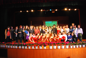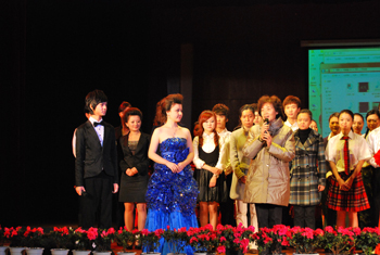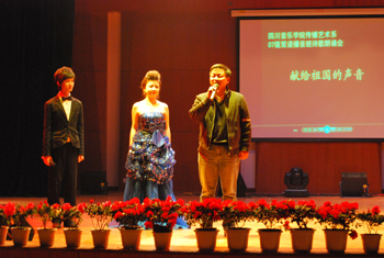2009年下午14:30,在新校区演艺厅,激越的鼓点声拉开了2007级双语播音与主持班的《献给祖国的声音》朗诵会的序幕。开篇的《回望》,让大家感受到了祖国60年走过的光辉历程、60年铸造的辉煌;情景朗诵《永远的格桑梅朵》、《夜幕下的哈尔滨》、《春天的故事》、电影片段《风声》的配音,使演出掀起一个又一个高潮;解说《走过这些年》、《再说长江之浦东》以及双语解说的《建国60年阅兵式》充分体现了我系的专业特色及同学们的专业水平。 最后,演出在歌舞朗诵《我和我的祖国》中落幕。 这次朗诵会既是2007级双语播音与主持专业的学生的一次专业学习总结,也是一次爱国主义教育活动。 系主任王江、向武军书记在演出时,分别发表了热情洋溢的讲话。