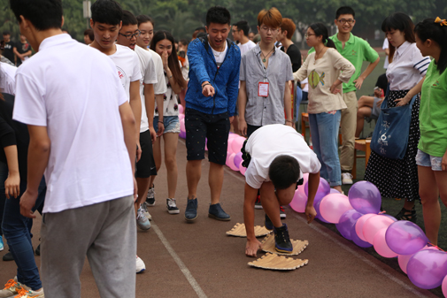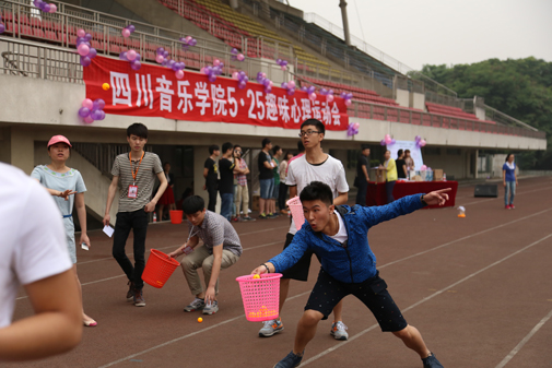 我系学生于 2014年5月22日在系党总支副书记后方、辅导员张旭带领下在新都校区体育场参加了第十一届5•25趣味心理运动会。 比赛开始后,同学们兴致高昂、精神振奋、团结合作,本着友谊第一比赛第二的原则,赛场上更多的是播撒欢乐。在近两个小时共三个项目的比赛中,欢笑声、加油声不断,现场气氛活跃热烈。经过激烈并欢快的角逐,我系同学们在第二轮游戏 “天女散花”项目中,获得了第一名的好成绩。三轮游戏下来,同学们虽略现疲惫,但更多流露的是对趣味比赛项目的意犹未尽。 本次活动不仅丰富了同学们的校园生活,同时也增进了同学们的情感交流。5·25趣味心理运动会的精心筹备和圆满成功,更是体现出今年会领导对大学生心理健康的高度重视,通过各种活动以有效促进同学们的身心健康和综合发展。