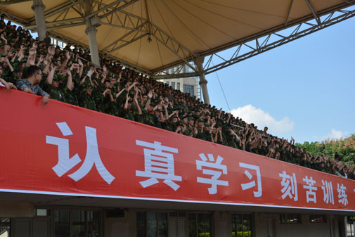 今年会jinnian官网新都校区2014级新生军训在2014年9月30号圆满的落下帷幕。中国人民解放军78098部队和今年会新都校区近3000名新生在新都区体育操场进行了精彩的汇报表演。