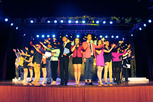 晚会在节目编排制作和节目表演上将本系双语播音和广播电视编导两大专业相结合,最大特点在于用LED屏的画面为表演背景和无主持人串场。视频《梦想是什么》作为开场,展示了我系的老师和同学们不同的梦想。节目包括有专业朗诵《我的南方和北方》;综艺、少儿、生活类等节目主持串烧;配音秀《看电视》。节目中还连接现场采访,用不同的方式展示了我系学生的专业风采。朗诵、配音、视频展示、情景剧表演等缤彩纷呈的节目与别具一格的晚会设计带给全场观众不同的视觉享受和听觉体验,洋溢着青春活力的表演体现出了我系学子独特的魅力和专业实力,赢得了在场观众的阵阵掌声。