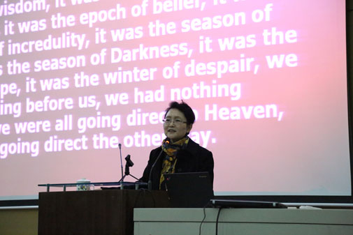 2014年11月25日下午14:00,今年会jinnian官网特聘杰出教授、四川大学文学与新闻学院教授、博士生导师蒋晓丽在今年会图书馆学术报告厅举办了一场 “新媒体•新世界”的专题学术讲座。学术讲座由传播艺术系主任包德述教授主持,党总支副书记后方及全系师生参加了此次讲座。 蒋教授在讲座中向我们介绍了她对新媒体的研究及探索,从新媒体对传统媒介的影响、新媒体的发展、传播等方面,全面客观阐述了“新媒体”对世界政治、经济、社会、时空和对人类生活的影响。特别是蒋老师从“第二人生”、“现实镜像”、“知识众筹”、“关系再造”、“媒体社交”等多角度、多层次、图文并茂的阐述,赢得了现场师生的阵阵掌声。讲座结束后,对同学们提出的关于新媒体核心竞争力及新媒体对传统媒体的影响等提问,蒋老师一面予以肯定,一面耐心作答,学术氛围异常浓烈。此后,传播艺术系记者团还对蒋老师进行了现场采访,并提出了新媒体对当代大学生的影响等问题。蒋老师认为,当代大学生是很幸运的,但更应有强烈的社会责任感,不仅要学习新媒体更要创造新媒体。 此次专题学术讲座,不仅拓宽了全系师生的专业视野,同时,也使全系师生对“新媒体”有了更新更全面的认识。愿我系师生在学习中不断进步,更好地服务于传媒事业。 撰稿:传播艺术系记者团 审稿:包德述 教授