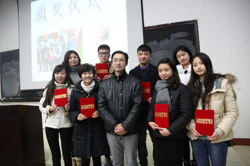 办公室获得“最佳组织奖”、宣传部获得“最佳表现奖”、外联部获得“最佳业绩奖”、文体部获得“最佳创意奖”、生活部获得“最佳人气奖”、团队发展与规划部获得“最佳风采奖”、记者团获得“最佳采访奖”。颁奖之后,张旭老师上台发言,提出新的一年里对学生会工作的新要求。