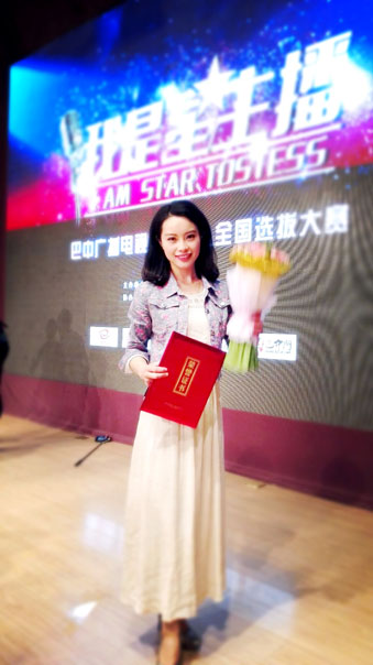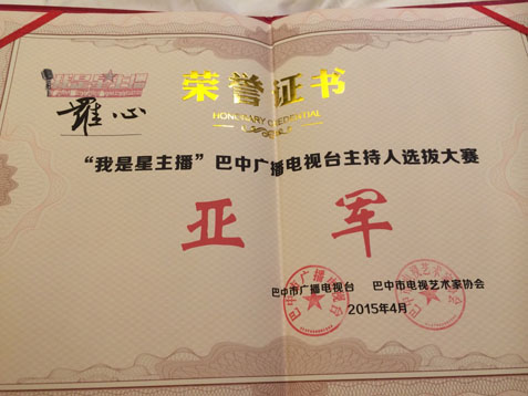 2015年4月24日,我系播音与主持艺术(英汉)专业2012级学生罗心,参加由巴中广播电视台举办的“我是星主播”主持人选拔大赛,一路过关斩将荣获亚军。 比赛伊始,罗心经过海选、复赛和半决赛,从来自全国各地的百名选手中脱颖而出,并顺利进入决赛。经过激烈角逐,最终获得比赛的亚军。巴中电视台领导对罗心的表现表示肯定和赞赏,邀请她参加巴中电视台节目《阳光问政》的直播主持。 罗心同学表示:这次比赛给我的收获非常多,不仅仅相识很多来自全国各地同专业同爱好的选手,在比赛期间的每一次准备、每一次登台、每一次彩排,都是一种人生的锻炼,尤其是在比赛时自己专业上的不足,评委老师都一针见血点评出来。这场马拉松似的比赛虽然已经落下帷幕,但是在我的心里它永远都是一颗闪亮的星星。对于自己这次获得的亚军,我第一是感到遗憾,遗憾的是自己还不够好,还没有做到更好、更努力;第二是庆幸,庆幸的自己这次是亚军而非冠军,可以发现自己更多的不足,自己还有更多要去学习要去努力的地方…有时候,一件事情的结果不一定是完美才最好,缺了一口的苹果照样征服了世界!