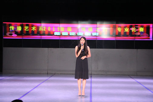 2015年6月9日下午,传播艺术系首届“传媒之韵”朗诵比赛初赛在第一教学楼118排演厅拉开帷幕。传播艺术系党总支副书记后方到场观摩,传播艺术系专业教师王雪玉洁、袁乐、柳维涛担任初赛评委,各年级双语播音专业学生共计百余人次积极参与此次比赛。 我系为提高在校大学生的人文素质与专业技能而举办此项比赛,本次比赛分为个人组和团体组。参赛选手自备稿件,以饱满的热情、生动的语言、丰富的情感、抖擞的精神展示了自己的专业素养。每组朗诵结束后,评委老师依次对每位选手进行现场点评,并根据三位评委老师平均分的高低,最终排序确定了进入朗诵比赛的个人和团体组前11位(组)选手。他们将在6月24日的朗诵比赛决赛中各显其能,角逐“传媒之韵”朗诵比赛一、二、三名。 本项比赛为传播艺术系举办专业比赛开创了先河,使同学们在专业学习的同时更多的参与到专业交流中去。希望进入决赛的同学们能更好的发挥自己的专业所长,赛出水平、赛出风采、赛出自信。