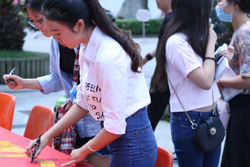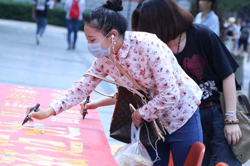 2015年9月24、25日我院在新都校区开展了主题为“防治艾滋病•从我做起”的系列活动。活动分为防艾知识进寝与师生签名活动,目的是大力普及预防艾滋病知识,进一步增强大家主动科学预防艾滋病的意识,正确认识艾滋病。 为了向我院学生普及防艾知识,9月24日晚由传媒学院学生会成员走访学生寝室,将提前印制好的艾滋病预防手册分发给同学们,让同学们认识和收获对于艾滋病的认知和相关知识,使大家意识到预防艾滋的重要性。9月25日在新都校区食堂门口举行“预防艾滋,从我做起"的签名活动,活动现场气氛热烈,同学们参与积极,取得了良好效果,得到了师生一致好评!