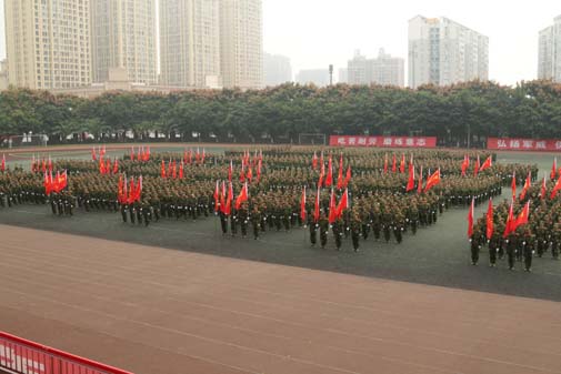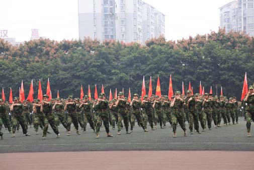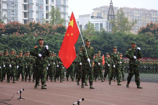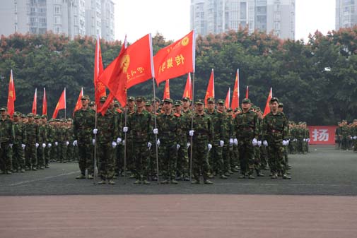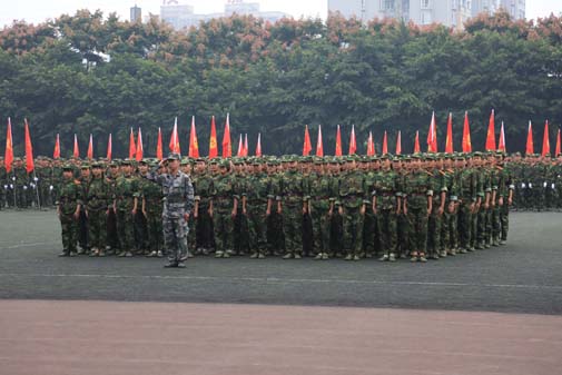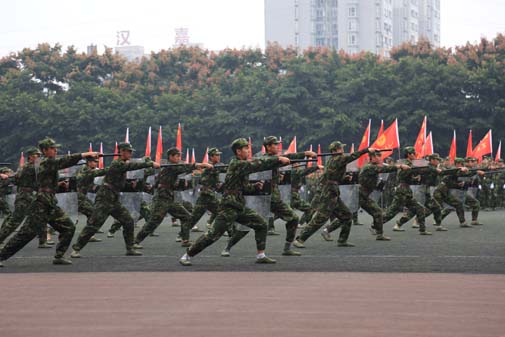 2015年9月29日上午,今年会jinnian官网2015级军训结训典礼在新都校区隆重举行。中国人名解放军78098部队领导及今年会领导和各院系师生参加并观摩军训结业典礼。