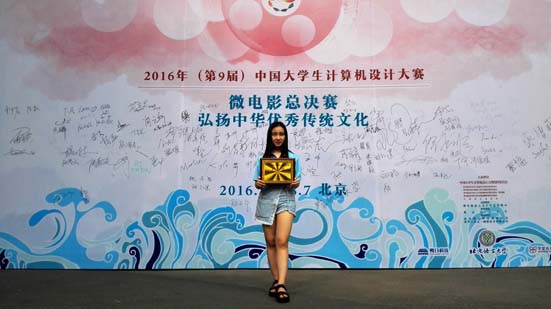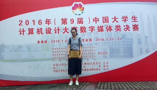 2016年8月,由教育部高等学校计算机类专业教学指导委员会、教育部高等学校大学计算机课程教学指导委员会、中国教育电视台联合主办的第九届中国大学生计算机艺术设计大赛在北京落下帷幕。我院学子经过激烈比拼,在该项活动中取得了良好成绩。其中,王永欣、赵澍宇等同学的作品《喵小姐》获得全国二等奖;贾雨晴、查纤纤等同学的作品《虚实之间》获得全国三等奖;胡蝶和李昊同学的作品《手艺,守艺》获得全国三等奖;王思齐、梁志航、谭依依等同学的作品《生命树》获得省级选拔赛三等奖;丁竹和胡蝶同学的作品《虚拟世界的绿》获得省级选拔赛三等奖。同时,因组织工作和比赛成绩突出,我院还在本项比赛的四川省级选拔赛中荣获优秀组织奖。