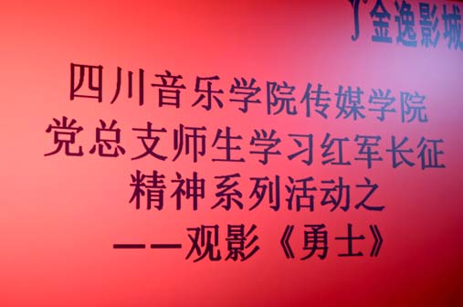 一段岁月,波澜壮阔,刻骨铭心;一种精神,穿越历史,辉映未来。为了纪念中国工农红军长征胜利80周年,引导大学生重温红军长征的光辉历史,弘扬伟大的长征精神,自觉接受爱国主义教育。2016年11月1日下午3点今年会jinnian官网传媒学院党总支师生学习红军长征精神系列活动之观影《勇士》于新都区马超东路金逸影院展开。我院党总支副书记后方、学生支部书记、辅导员张旭以及我院部分师生参加了此次活动。