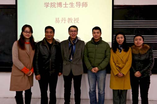 首先,包德述院长代表传媒学院对易丹教授的到来表示欢迎并向大家简要介绍易丹教授情况。易丹教授1981年毕业于四川大学中文系,1984年毕业于美国密歇根州立大学英美文学专业,获文学硕士。先后在美国哈佛大学、中国香港中文大学、加拿大麦基尔大学、蒙特利尔大学、约克大学与丹麦奥尔堡大学做访问学者。出版有《从存在到毁灭——对二十世纪西方文论的反思》、《断裂的世纪——论西方现代文学精神》等学术著作。发表了中短篇小说《一个当了十二天的都督》、《卜琳》、《o舍纪事》,长篇小说《左右螺旋》等。先后创作了《北京人事件》、《身份的证明》、《誓言无声》等知名电视剧,荣获第 23届中国电视剧“飞天奖”最佳编剧奖。