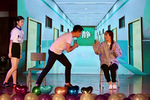 晚会由劲歌热舞拉开帷幕,伴随着美妙的音乐和极具动感的舞蹈,全场的气氛被充分调动起来,小音乐厅变身为一片欢乐的海洋。小品《我的路》,通过四位学生进行艺考面试的故事带领同学们时空穿梭,重回到那个属于我们的艺考时光,属于我们的青葱岁月;舞蹈《Red light》不仅令全场观众热血沸腾,更是把现场气氛推向高潮;相声表演《满腹经纶2》则是亮点迭现,妙语连珠,台词幽默风趣,引得现场笑声连连;刘畅老师深情演唱歌曲《追寻》,借此怀念那些已经逝去了的美好时光,赢得现场掌声不断;而大四学长徐毅的魔术更是将同学们带入到一个魔幻世界,那神奇的魔术令观众目不转睛,百思不得其解。
