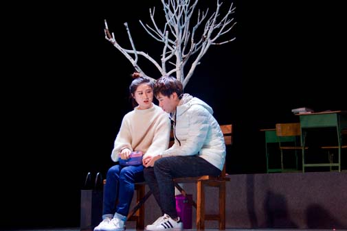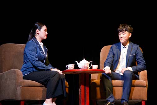演出结尾处,包院长、后书记、王副院长、袁乐老师分别对话剧的表现和同学们的精神进行了点评和鼓励,表达了对于师生们努力付出并终获喜人效果的高度赞扬和肯定,他们鼓励同学们要在有限的大学时光里规划好自己的生活、学习和情感,要生活多彩、学业圆满、情感真挚的度过和享受大学的美好时光,不给自己留下遗憾、不让自己虚度光阴。