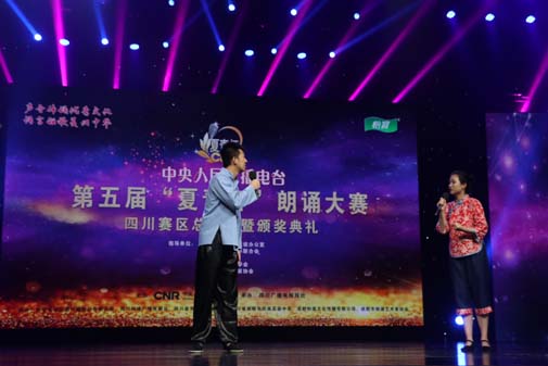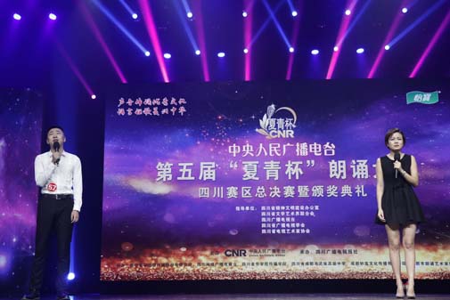 颁奖典礼由四川电视台主持人张伊与川音传媒学院张紫杰同学共同主持,川音传媒学院梁笑天和魏锦珺同学担任了成人组、配音组总决赛主持人,川音传媒学院戴博理和罗宇婷同学担任了青少年组总决赛主持人,川音传媒学院参赛选手们与主持人在朗诵、配音和主持方面的出色表现与执著追求,给各位嘉宾与评委老师们留下了深刻而难忘的印象。同时,应四川赛区承办方四川广播电视报社赛事活动需要,川音传媒学院派出了由16名同学组成的志愿者团队全程服务赛事活动,志愿者们精确分工、高效合作,热情周到的赛事服务得到了赛事导演组、评委老师、参赛选手与现场观众的一致好评。