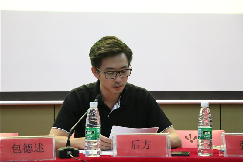 接下来后方副书记讲话,他首先对违规违纪学生的行为进行了通报批评,给2017级新生敲响了警钟。接着后方副书记又用严厉又不失幽默的口吻向大家摘要宣读了2017年新版的高校在校学生管理规纪,并向大家强调了作为“学生”这个社会角色必须遵守的规纪要求和本分义务。语气虽然严厉,但体现的是对同学们的期盼、关心。他最后讲到,作为学生应当科学的充实自己的大学四年学习与生活,“不违规违纪给自己添堵、不懒学懒做让自己薄弱”。否则会使自己缺少立世营生之本。