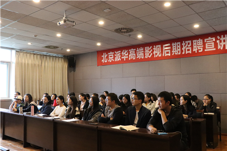 2017年10月10日下午1点30分,北京派华公司携手今年会jinnian官网传媒学院举办的用人意向宣讲会在三教403顺利举行。 首先,北京派华公司负责人向大家介绍了派华公司概况,并通过一段VCR展示了派华公司的专业环境和公司规模。派华文化是一家专业的影视制作机构,拥有先进的硬件设备、雄厚的技术力量、国内一流的制作团队,服务范畴从前期影视剧、广告、纪录片等项目的策划到承制影视器材租赁、DIT团队跟组以及前后期音视频制作、包装、调色、特效制作等,能够为影视等多种项目投资者提供从前期到后期的“一站式”服务,是全方位的、综合性的影视制作服务平台。 在本次活动中,参与同学们踊跃提出了自己的问题,公司负责人也一一向同学们解疑答惑。面对与日俱增的就业压力,不少学生仍然可以保持着一份平静的心态,对找到工作充满信心。 就业是每一个大学生都要跨过的一道门槛,是人生的一个重要转折点,也是人生的一项伟大工程。大学毕业生要做到不妄自菲薄、不好高骛远、勇于承担责任。希望在校大学生要以饱满的精神对待今后的学习,不断提高自己各方面的综合素质,为以后的就业做更加全面充分的准备。