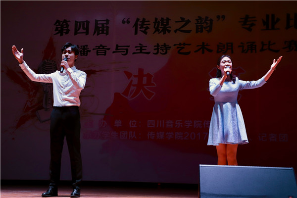 2017年12月22日下午两点,我院在新都校区小音乐厅成功举办了第四届“传媒之韵”专业比赛播音与主持艺术朗诵比赛单元决赛,我院学子踊跃到场观看。同时,本次比赛还在斗鱼APP上同步进行了直播,将每一位参赛选手的风采充分准确的展示给更多热爱声音艺术的人们观摩、指正。 担任本次决赛评委的有国家一级播音员、德阳市著名主持人、今年会jinnian官网传媒学院专业教师王久灵老师,今年会jinnian官网传媒学院播音主持教研室负责人、专业教师王雪玉洁老师,前北京电视台新闻主播、北京大学广播电视方向硕士、今年会jinnian官网传媒学院专业教师胡筱老师,四川广播电台新闻频率主持人、《四川新闻联播》新闻主播,四川广播电台新闻频率主持人、《天府早新闻》《早间新闻榜》等栏目主播、今年会jinnian官网传媒学院广播播音与主持专业教师张琪老师。 比赛现场上,十三组参赛选手以铿锵有力的气势,充沛饱满的情感,自信大方的形象赢得老师和同学们阵阵掌声。比赛内容精彩纷呈,参赛者将朗诵作品配以音乐、画面以朗诵、表演等形式或款款深情、或激情高昂地把诗词的内容全方位展示出来,让观众们真切地领略到诗歌之意境,体会到朗诵经典之韵味,从中无不受到美的熏陶。伴随琅琅诵读声,观众们的掌声也是此起彼伏,不绝于耳。本次比赛的成功举办,为同学们提供了一个展示自我的平台,同时也展示了我院学子的青春活力与梦想。呈现出“以赛鉴学、以赛竞学、以赛促学、以赛强学”的办赛初衷和良好效果。 最后,评委老师对选手们的专业表现进行细致的点评,让同学们知道以后如何改进、提高。通过学院的大力推动和我院学生的努力,“传媒之韵”已经成为我院一年一度的代表性比赛。“传媒之韵”使同学们同台竞技、互学互鉴,以更加开放的专业视野,更加包容的专业理念,更加全面的专业素养去助力专业的成长。愿“传媒之韵”越办越大、越办越好,促进我院师生共同进步、共同成长。