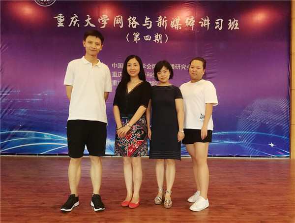 2018年7月9日-14日重庆大学网络与新媒体讲习班(第四期)在重庆大学民主湖报告厅举行,我院教研室主任刘莉副教授,专业老师郭子慧、李俊文以及2016级研究生周琼怡参与此次讲习班。