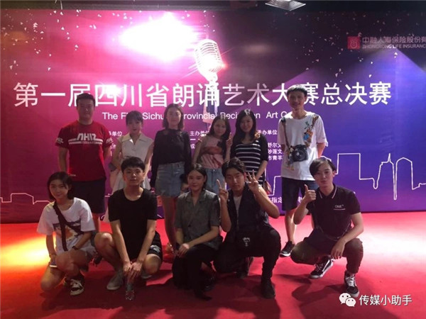 8月29日,第一届四川省朗诵艺术大赛总决赛暨颁奖典礼在成都市青羊区图书馆落下帷幕。传媒学院郑云娆同学获得二等奖,何沁浍同学获得三等奖,朱琳、景晟晨、刘雪、齐琪、吴俊铭等5名同学获得优秀奖。   本次大赛由成都市文学艺术界联合会、四川人民艺术剧院、成都市朗诵艺术家协会联合指导主办,成都市青羊区图书馆承办,参赛人数共有一万多人,经过初赛,复赛的层层选拔,共有200多名选手进入总决赛。大赛旨在为普及普通话,繁荣四川省朗诵艺术,选拔朗诵艺术人才搭建我省与国内相关朗诵艺术表演、学术理论研究对称的信息渠道和平台。