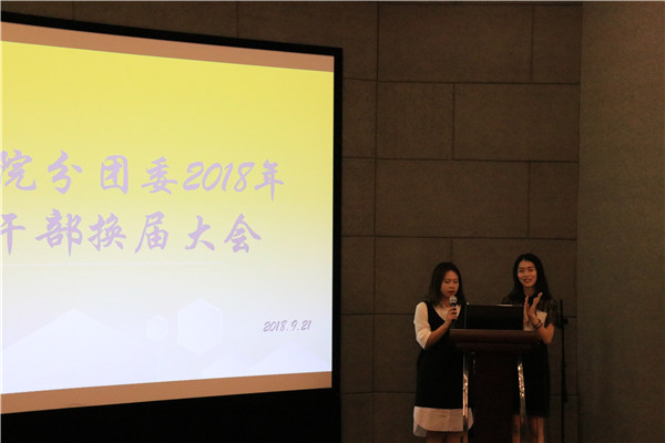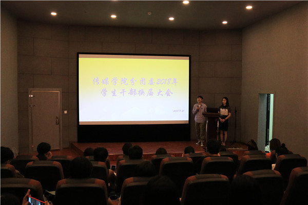 2018年9月21日下午13:00,传媒学院2017届分团委学生会主席团干部换届选举大会在四教102召开。传媒学院党总支副书记后方,学生支部书记张旭,分团委书记游月,分团委副书记董航,辅导员罗娜和全体学生会干部、学生会成员代表参加了此次活动。