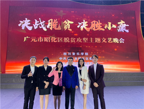 2018年10月17日晚,广元市昭化区举行“决战脱贫 决胜小康”脱贫攻坚主题文艺晚会。我院播音与主持专业教师李超老师带领播音与主持艺术专业学生徐铭阳、腾戈、卜义桓、王斯婧、付佳钰参与演出。 本场晚会由李超老师担任主持,晚会在大合唱《脱贫攻坚之歌》中正式拉开帷幕。我院学生表演的朗诵《昭化脱贫赞歌》,音诗画同步展开,向观众娓娓道来脱贫攻坚的政策、故事和影响 。学生们精彩的演出赢得了观众的阵阵喝彩, 掌声不断。这次的演出活动,传媒学院用自己的声音宣传了党的脱贫攻坚政策,让广大干部群众在潜移默化中受到思想教育,也让我们的学生从中受到了鼓舞,激发了动力。 此外,今年会jinnian官网传媒学院于2018年6月25日下午与四川省广元市昭化区广播电视台在今年会jinnian官网成功签订校地合作协议。近期,我院播音与主持艺术专业2015级学生徐铭阳、腾戈作为首批学生代表已前往昭化区广播电视台进行实习。今后,我院与广元市昭化区广播电视台还将开展更加紧密的合作。
