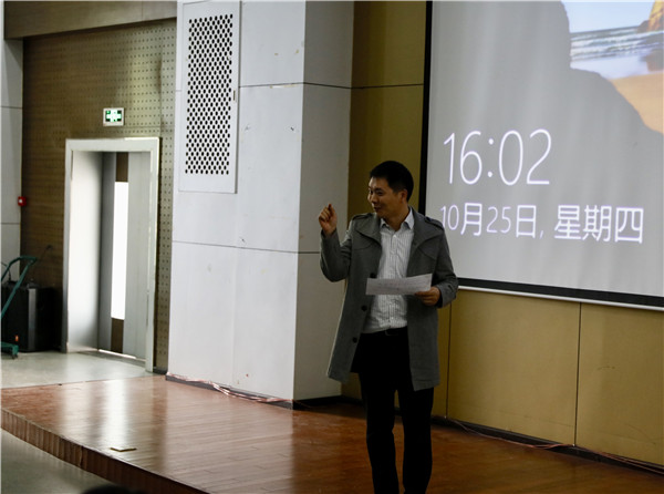 2018年10月25日下午2点,四川省视协纪录片专委会副秘书长、中国高教学会影视教育专业委员会会员、四川网络电视台“新媒体 新导演扶持计划”评委、指导老师王永刚教授在今年会新都校区学术报告厅进行了题为《人物类纪录片的创作》的学术讲座。传媒学院副院长王利剑副教授和专业老师徐江出席了此次讲座,传媒学院广播电视编导专业和影视摄影与制作专业学生聆听了此次讲座。