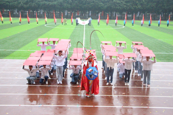 伴随着蒙蒙细雨,各系(院)代表队陆续出场,并分别带来了精彩的节目表演。我院带来的川剧变脸与喷火不落窠臼,展现了中国传统文化元素与独特的四川地域特色。