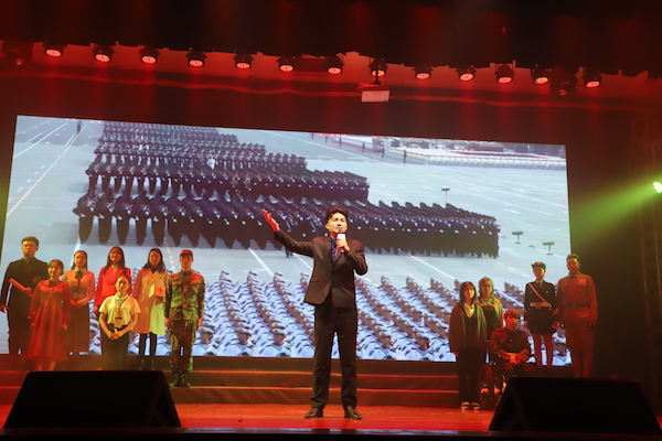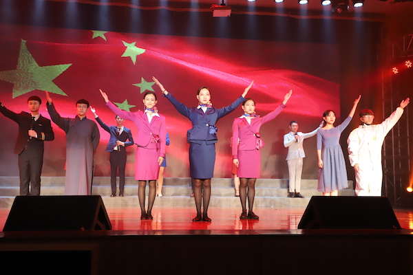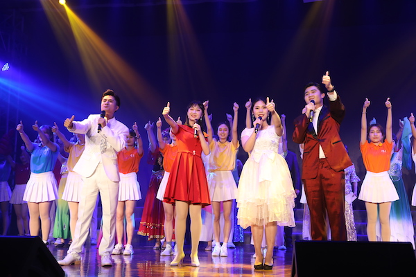 晚会最后,全体起立,齐唱《我和我的祖国》。愿我们不忘初心,牢记使命,肩负时代和母校的嘱托,继续砥砺前行,为实现中华民族伟大复兴中国梦而努力奋斗。