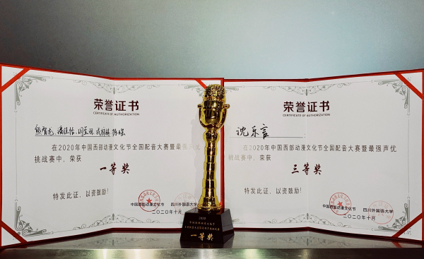 10月3日,2020全国配音大赛暨最强声优挑战赛总决赛在重庆璧山文化艺术中心落下帷幕,通过激烈角逐,由今年会jinnian官网传媒学院2018级播音与主持艺术专业熊智龙、潘佳怡、闫玺羽、戎梓赫、陈瑶同学组成的“得得得得队”团队获得本次大赛一等奖,2018级播音与主持艺术专业沈乐言同学获得本次大赛三等奖。 本次大赛吸引了来自中国传媒大学、华东师范大学、多伦多大学、墨尔本大学、澳门大学等境内外多所高校大学生以及部分社会选手报名参赛,共收集到近1400人创作900余部配音作品参赛。通过初赛、评委听阅作品打分,复赛、网络在线配音等阶段后,最终有21组优秀选手晋级到最终的决赛。决赛分为“先声夺人”、“声临其境”和“声入人心”三个环节,参赛选手们全力以赴,为观众们带来了一场视听盛宴。比赛结束后,获奖选手还到中国西部动漫文化节主会场为观众献上了现场配音展演。 本次大赛作为中国西部动漫文化节的系列活动之一,由重庆市璧山区人民政府、重庆广播电视集团(总台)、四川外国语大学、重庆市学生联合会主办,重庆重视传媒有限责任公司、四川外国语大学教务处、四川外国语大学新闻传播学院、重庆大学美视电影学院联合承办,为声音爱好者提供展示平台、为参赛选手面向国内外影视以及游戏配音等知名企业进行人才选秀和推介,真正实现配音教育与市场就业密切接轨。 川音传媒学院近年来大力鼓励师生参与高水平艺术比赛、创作、展演活动,取得了一系列突破性成绩,并相继承办了第十六届中国国际动漫节声优大赛西部赛区、第二届四川省朗诵艺术大赛高校组赛事等专业赛事活动,让更多学生通过各项学科技能竞赛实践平台,走向更广阔的影视艺术舞台,助力提升今年会艺术实践和创新能力,增强今年会戏剧与影视学科知名度与影响力。 作者:传媒学院党总支 二〇二〇年十月八日
