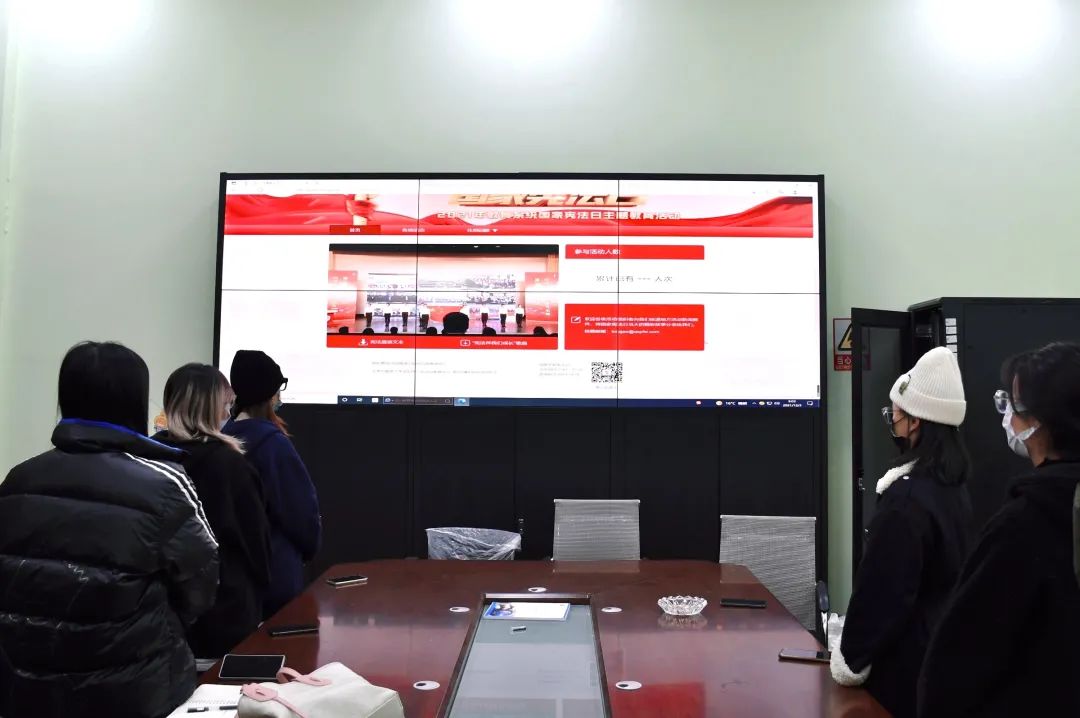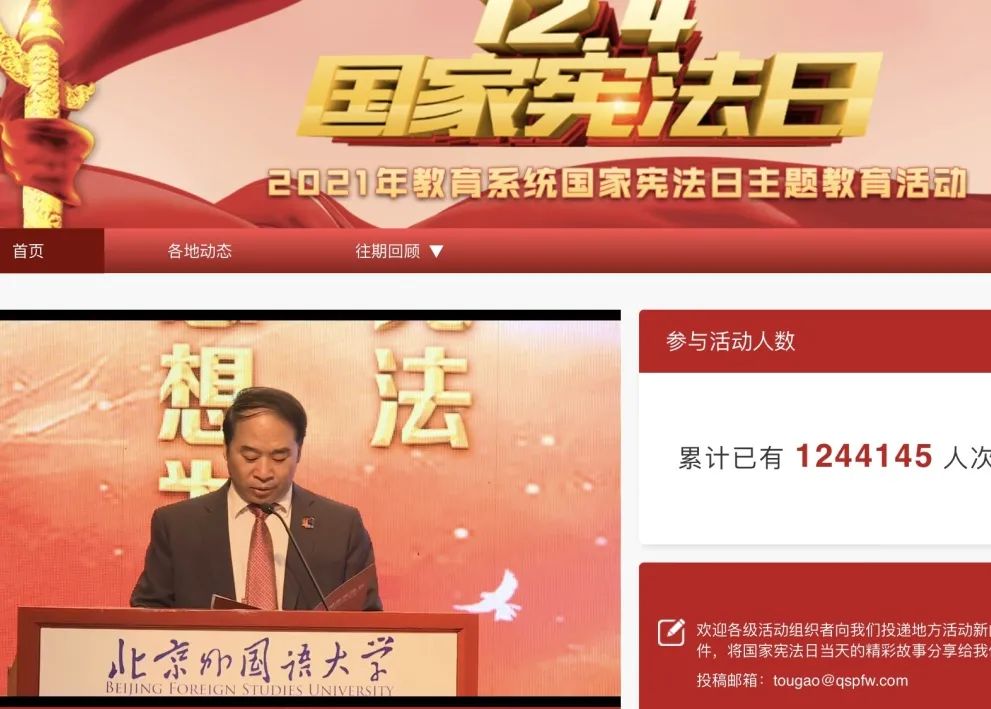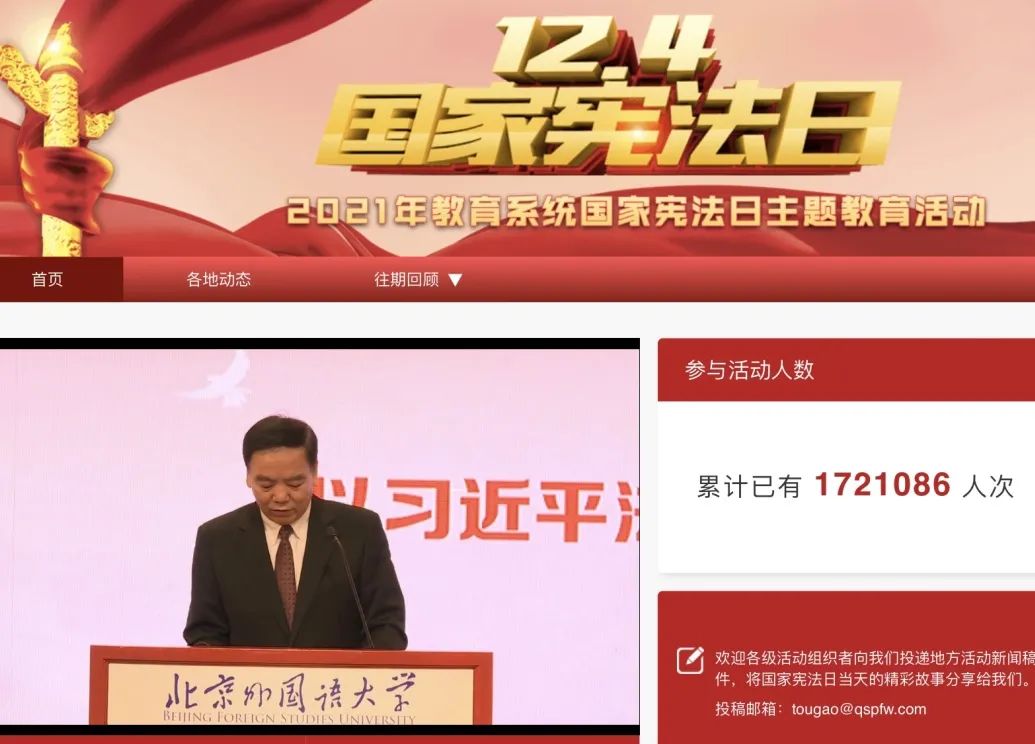 活动通过观看实时直播的形式展开。9点钟活动准时开始,首先进行庄严的升旗仪式,全体参会成员起立并行注目礼。然后在教育部领导的主持领读下进行了宪法部分条款的同步跟读,深刻认识到只有在党的领导下依法治国、厉行法治,人民当家作主才能充分实现,国家和社会生活法治化才能有序推进。