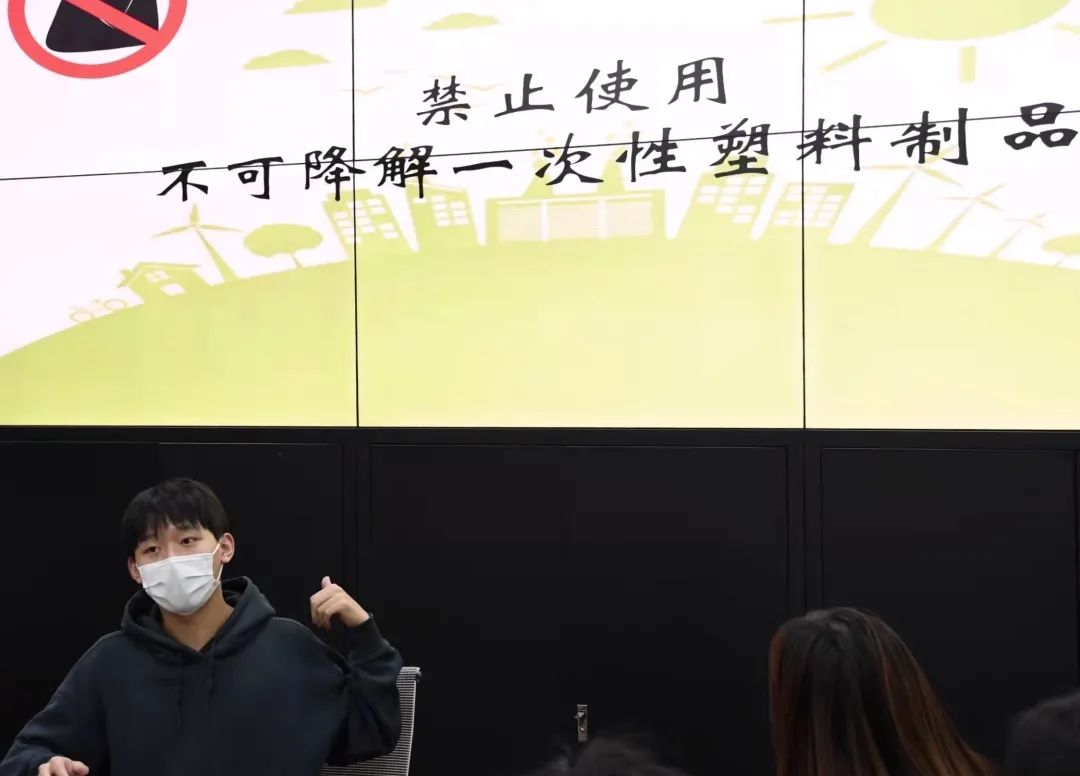 短片结束后,在场同学纷纷发言,提出了自己对节能环保和禁止使用不可降解一次性塑料制品等环保问题的看法。保护环境,是我们每个人的职责,并且保护环境也是在保护我们自己,我们合理利用资源,更要尽心竭力保护环境。禁止使用不可降解一次性塑料制品从我做起,从我们做起!