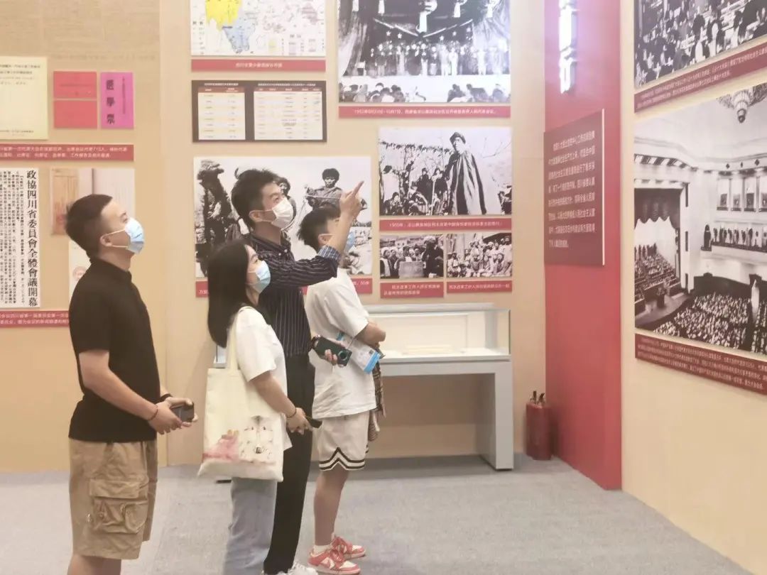 主题展览按照中国共产党百年历史的四个历史时期,划分为4大部分,分别是“浴血奋战换新天”“艰辛探索创伟业”“伟大变革铸辉煌”“民族复兴谱新篇”以及对应的24个单元。展览采取历史图片、文物史料、场景再现、音像视频、艺术呈现等形式聚焦中国共产党成立100年来的重大历史事件和光辉历程,多角度充分展示中国共产党在四川的发展历程。“通过这些生动的图片和史料,让我们对四川百年的革命史和党史有了更深的了解。”传媒学院党总支副书记刘莉说到。在参观过程中,刘莉副书记不断地向我们讲解她所了解的历史事件,引导党员教师们自由讨论,使大家对党的历史,尤其是党在四川的发展史,有了更进一步的了解。紧跟着刘莉副书记的步伐,传媒学院全体党员教师、党员学生代表都沉浸在1200余张历史图片和400余件文物实物所勾勒出的党的百年发展史画中,深刻感受到,在伟大的中国共产党的领导下,四川人民创造了一个又一个的人间奇迹。