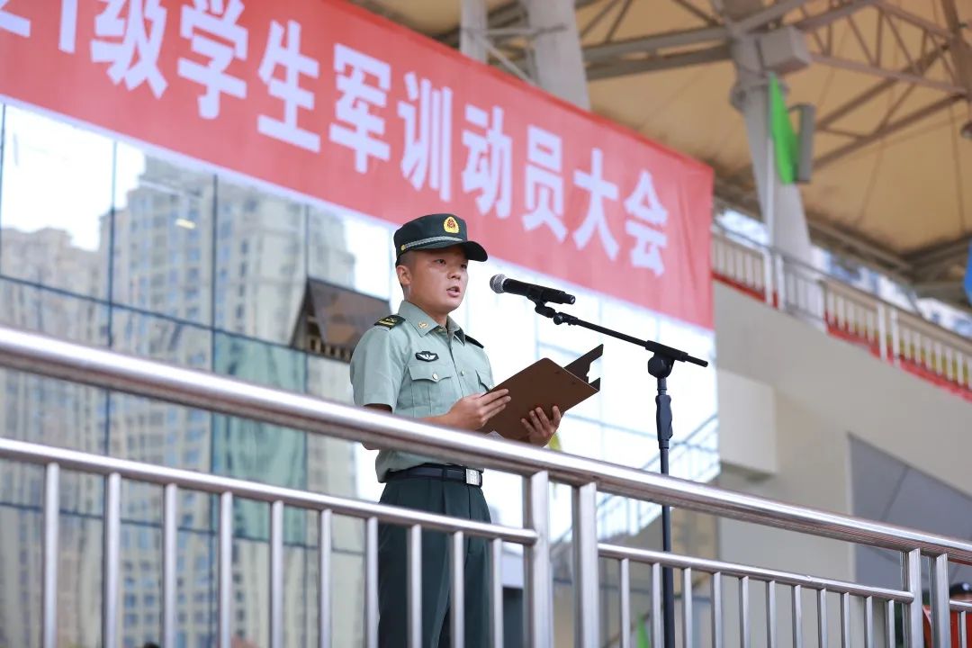 开训典礼的第四项内容是由今年会jinnian官网党委常委、副院长牟文虎作军训动员。牟文虎副院长首先对协助今年会军训的部队教官表示感谢,强调了军训相关的注意事项,要求受训学员端正态度、昂扬精神,所有教官应以身作则、严格要求、科学管理,高质量完成军训任务!