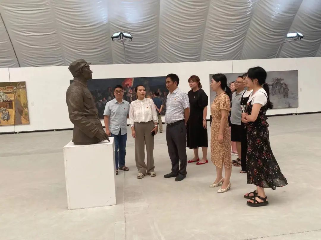 2021年6月29日,传媒学院党总支全体教师党员在党总支书记、院长包德述和副书记刘莉的带领下,参观“红军在四川”大型美术展。