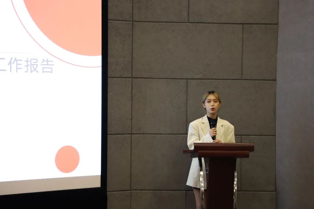 伴随着庄严的国歌,本次换届大会拉开了序幕。国歌毕,2019届学生会主席王蕤同学进行工作报告,她对2019届学生会过去一年的工作进行了细致的回顾并反思,并提出了对未来的展望与祝愿。