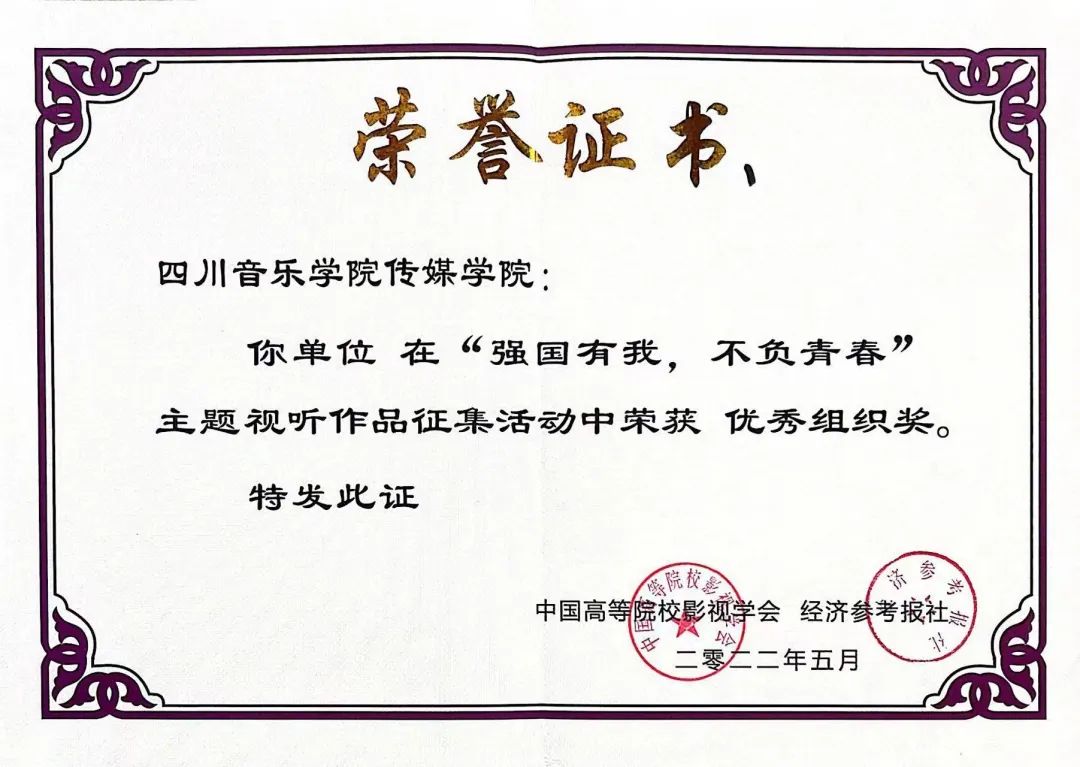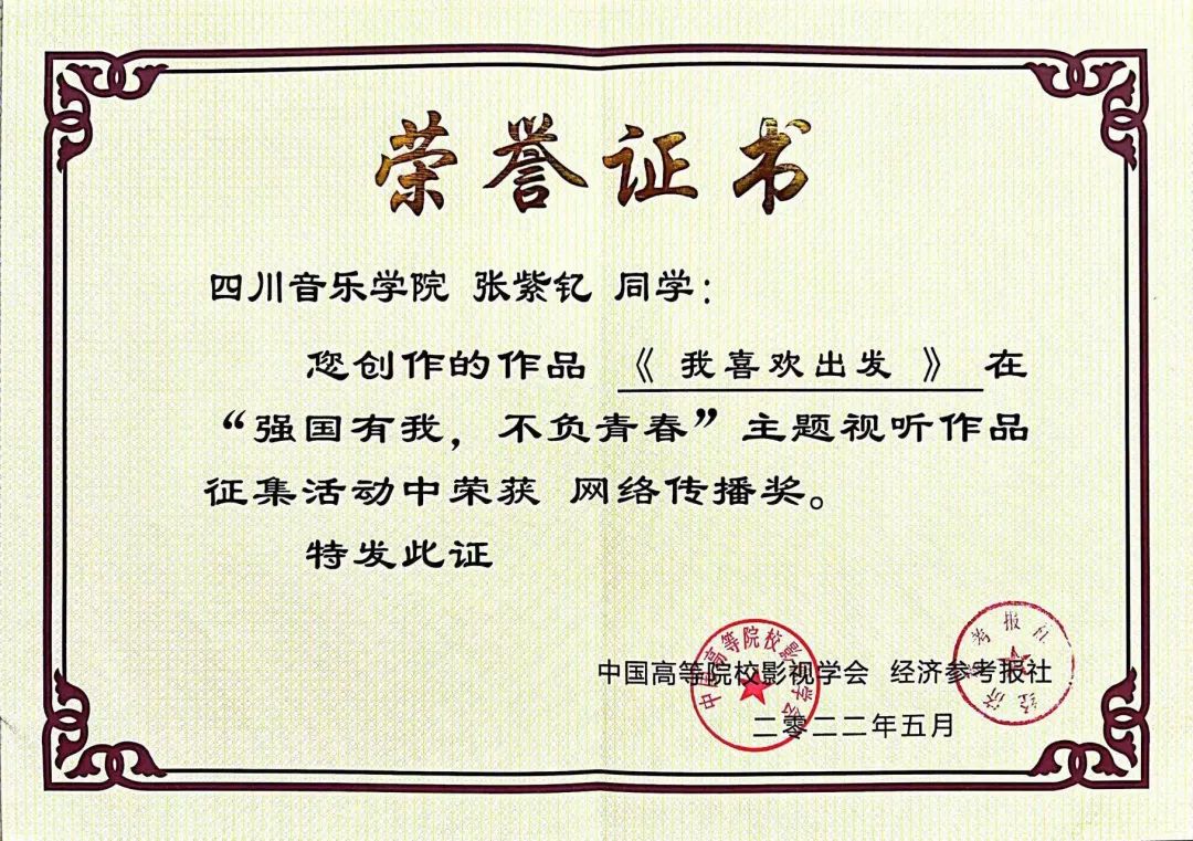 近期,由中国高等院校影视学会网络视听专业委员会与经济参考报社联合主办的“强国有我、不负青春”主题视听作品征集活动获奖名单揭晓,传媒学院2021级播音与主持艺术专业学生张紫钇创作的诵读作品《我喜欢出发》荣获本次征集活动网络传播奖,今年会jinnian官网传媒学院荣获“优秀组织奖”。