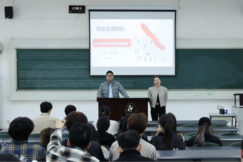 最后以“备考公职岗位”话题总结本次讲座,张老师给出了不少了有益的建议,并提出了备考过程中易踏进的陷阱,为同学们成功备考提供经验支持。