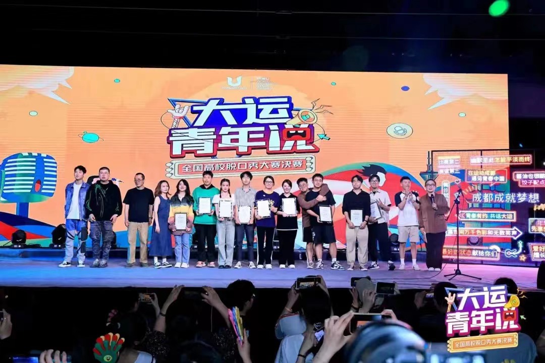 2023年5月13日,“大运青年说”全国高校脱口秀大赛决赛在成都梵木Fying国际文创公园热烈开赛。大赛邀请了海宇、Echo、唐川担任导师团队,著名喜剧演员吕严、闫佩伦、小灵通作为现场特邀评委为大赛保驾护航。