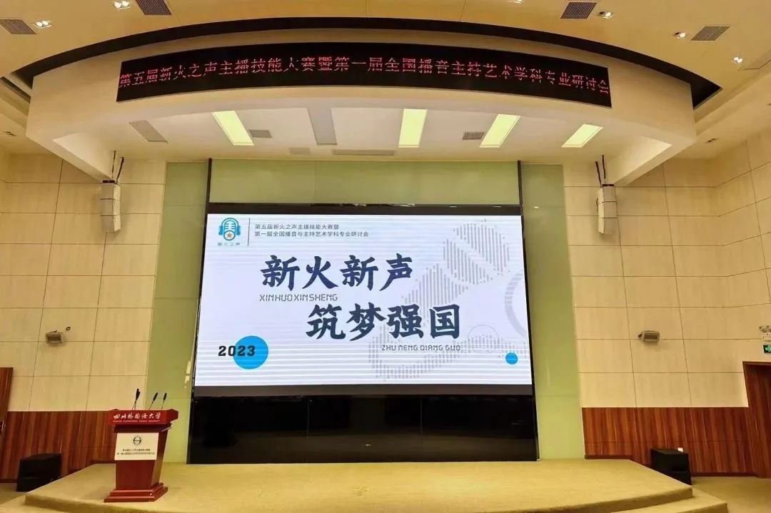 5月14日,第五届新火之声主播技能大赛暨第一届播音与主持艺术学科专业研讨会在四川外国语大学东区宏文楼国际报告厅举行。本次播音与主持艺术学科专业研讨会由四川外国语大学、重庆市电视艺术家协会、AsiaFM亚洲音乐台联合主办。中央戏剧学院影视系教授刘云丹,重庆大学美视电影学院副院长马欣,安徽艺术学院传媒学院党总支书记、院长蔡正兰,重庆对外经贸学院影视融媒体学院副院长张琦,四川外国语大学新传学院党总支书记郭健出席会议,副院长丁钟主持会议。