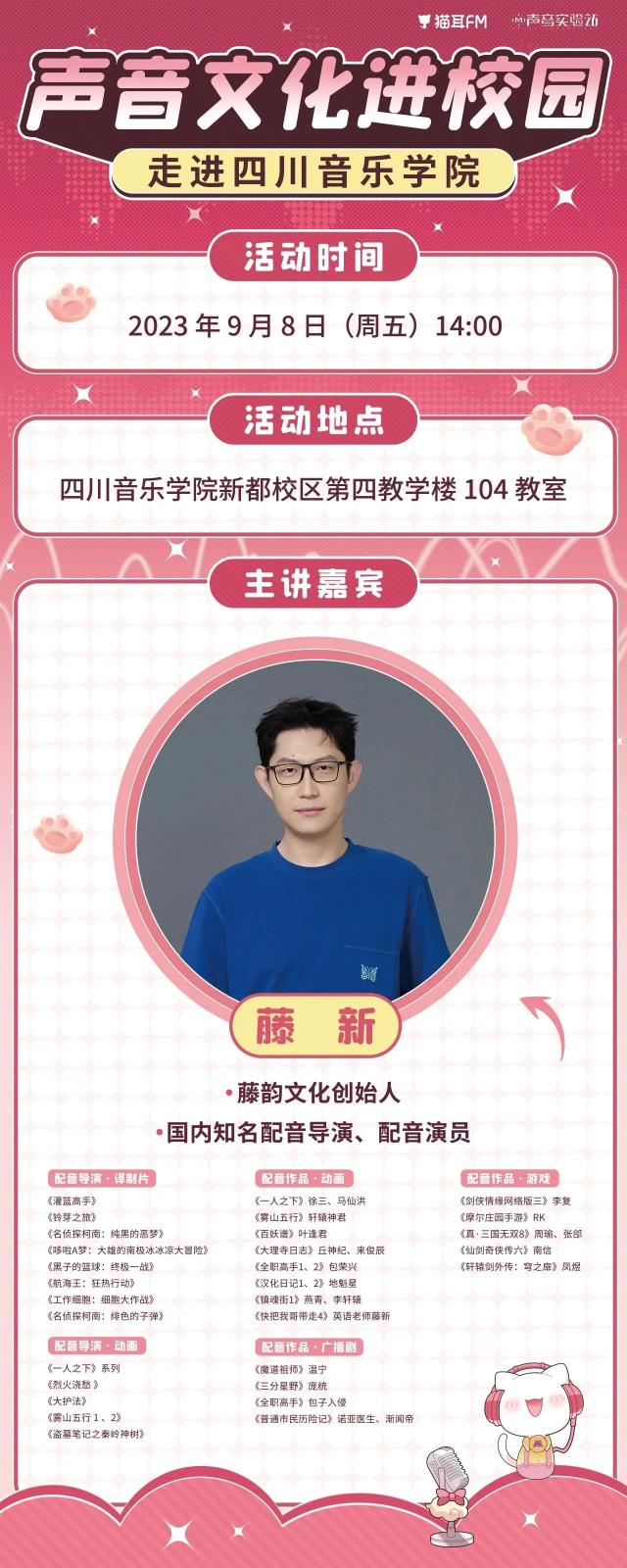 【讲座预告】“声音文化进校园”活动——知名配音演员藤新分享会