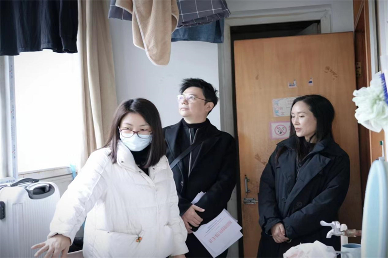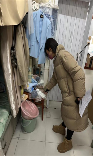 走访中,学院领导和辅导员对宿舍安全进行全面细致的检查,全方位的查看了床位、桌面、洗漱池与厕所等存在安全隐患的地方。对学生们将插线板放在床上、携带大功率电器、大件物品堆放在高处等具体问题,提出整改意见,并督促学生现场进行了整改。同时,对学生们进行了寝室安全教育,帮助学生们提高安全防范意识,提醒各位同学不得在寝室内吸烟,要多开窗通风、不得堆放杂物与易燃物品。