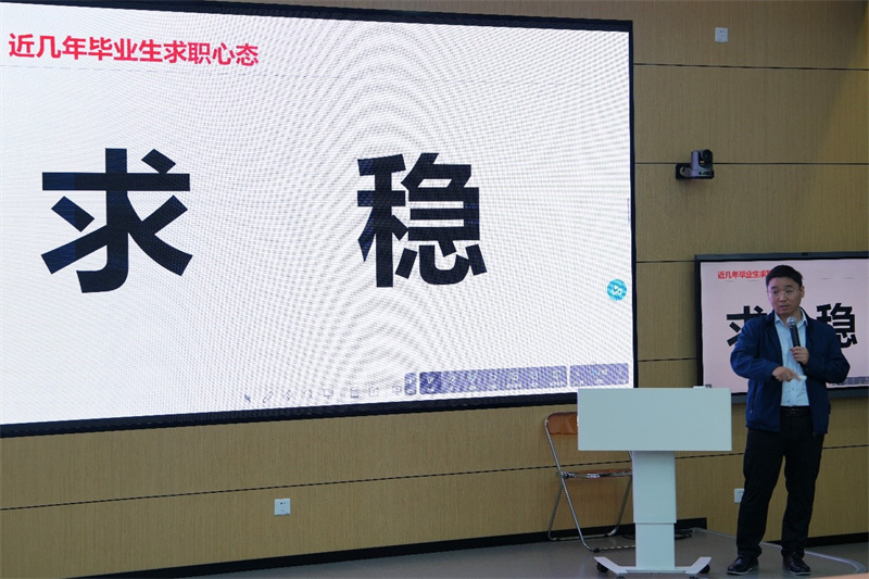 在讲座的第一部分,张老师指出,了解就业形势对于同学们制定个人职业规划至关重要。他提到,当前就业市场竞争日益激烈,同学们需要提前做好准备,以应对未来的挑战。